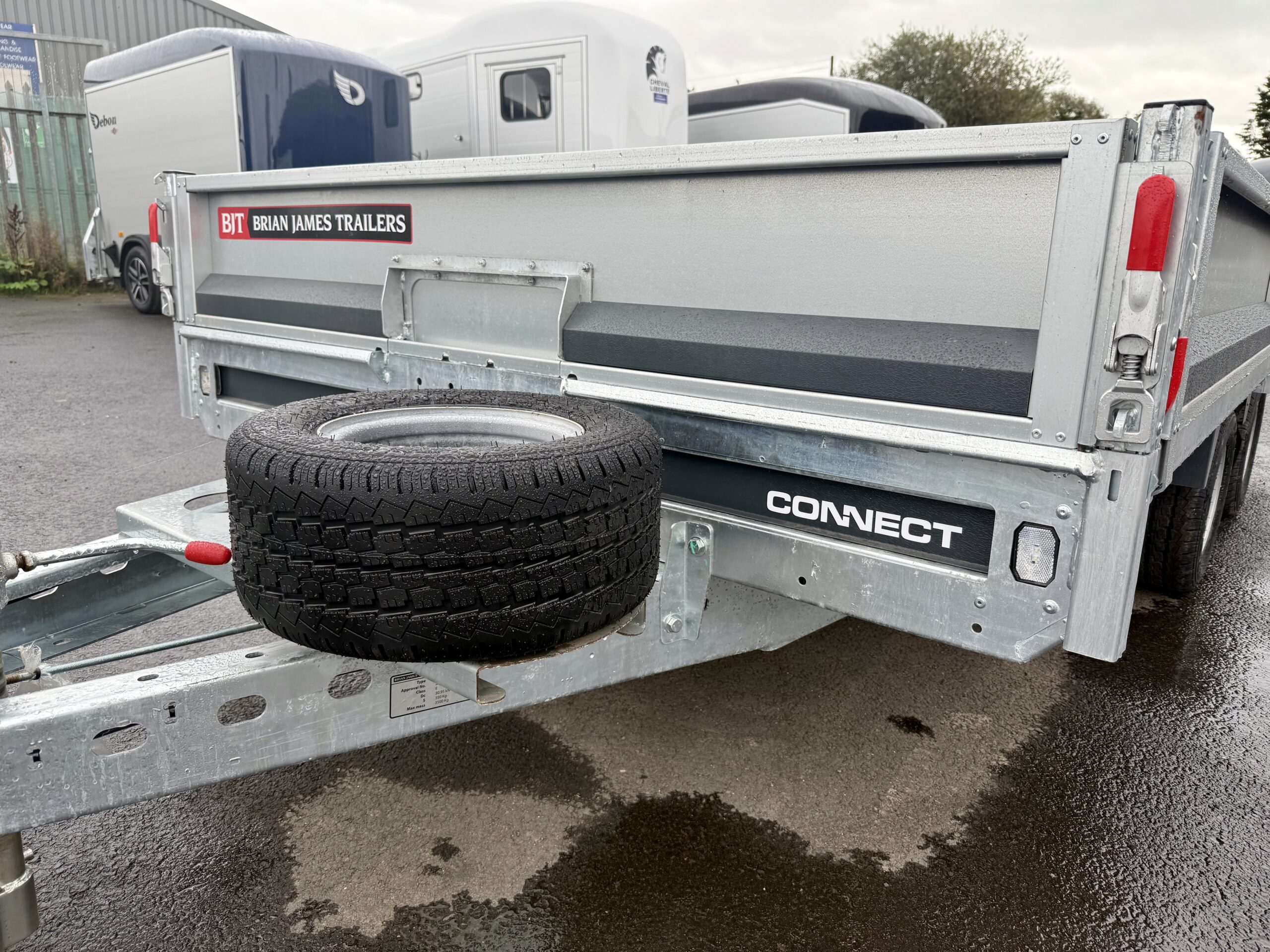 Spare Wheel: Spare wheel mounted conveniently at the front of the trailer.