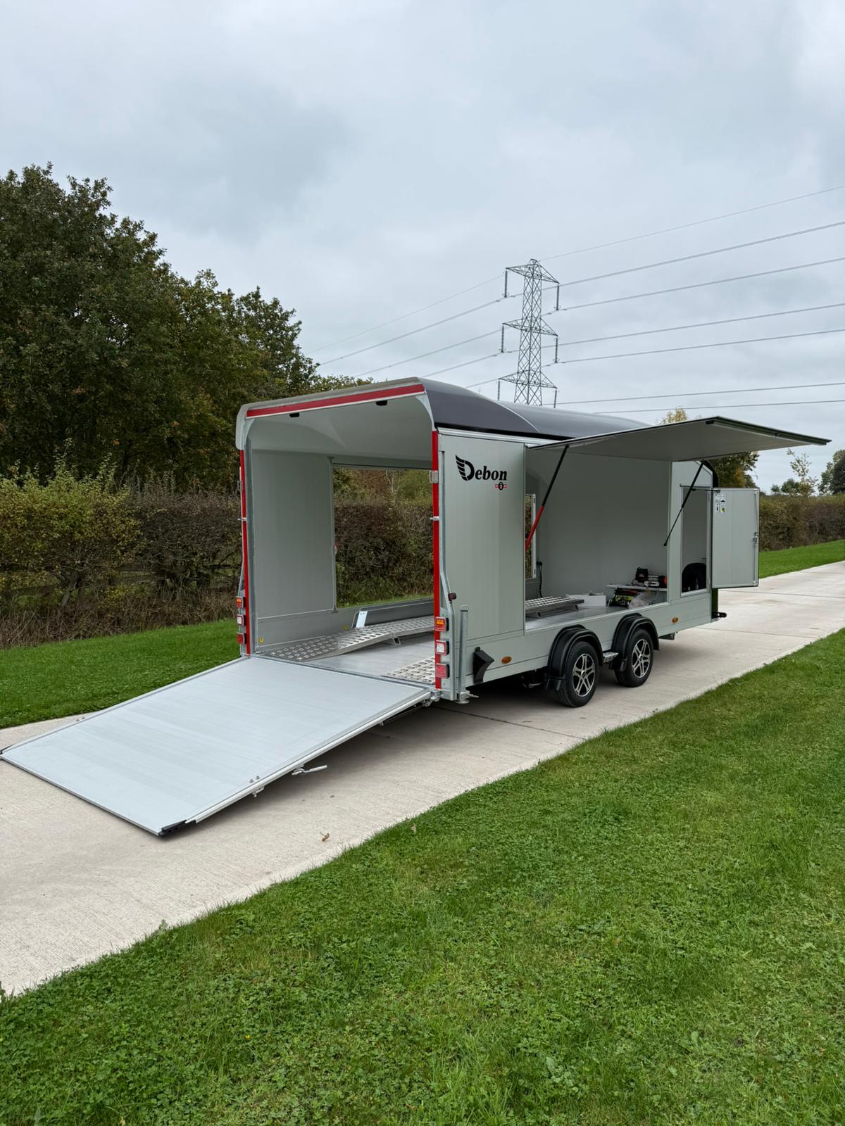For something a bit special, the Debon Roadster C1000 Enclosed Car Transporter comes fully-loaded with amazing features and innovation including the Pullman 2 Suspension System, twin-axle, galvanised steel chassis with aluminium extrusion framework, anti-slip aluminium floor, Gull Wing doors and inspection doors to name just a few.